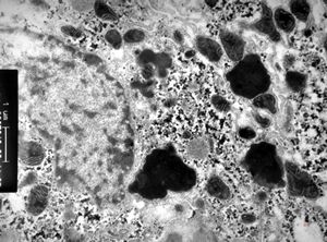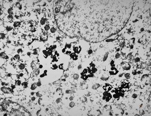 M,1y. | glycogenosis type I.(glycogen dissolved due to UA blockstaining)